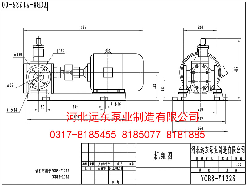 YCB8/0.6齒輪泵,流量:8m3/h,壓力:0.6Mpa,吸入真空高度5米,口徑65mm,配電機:Y132S-6